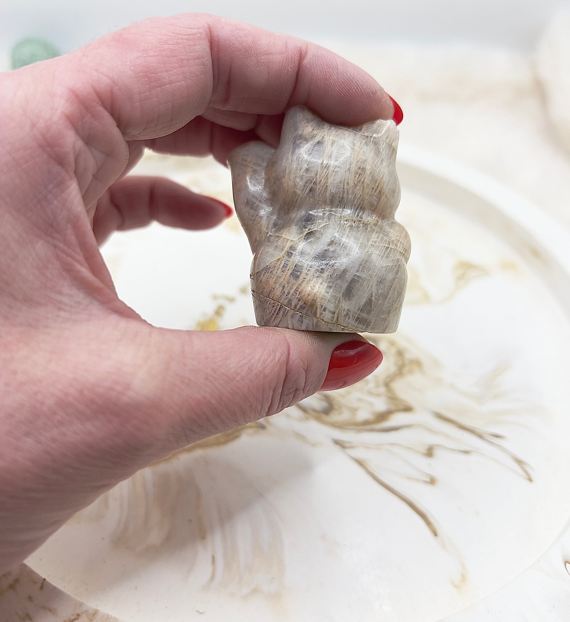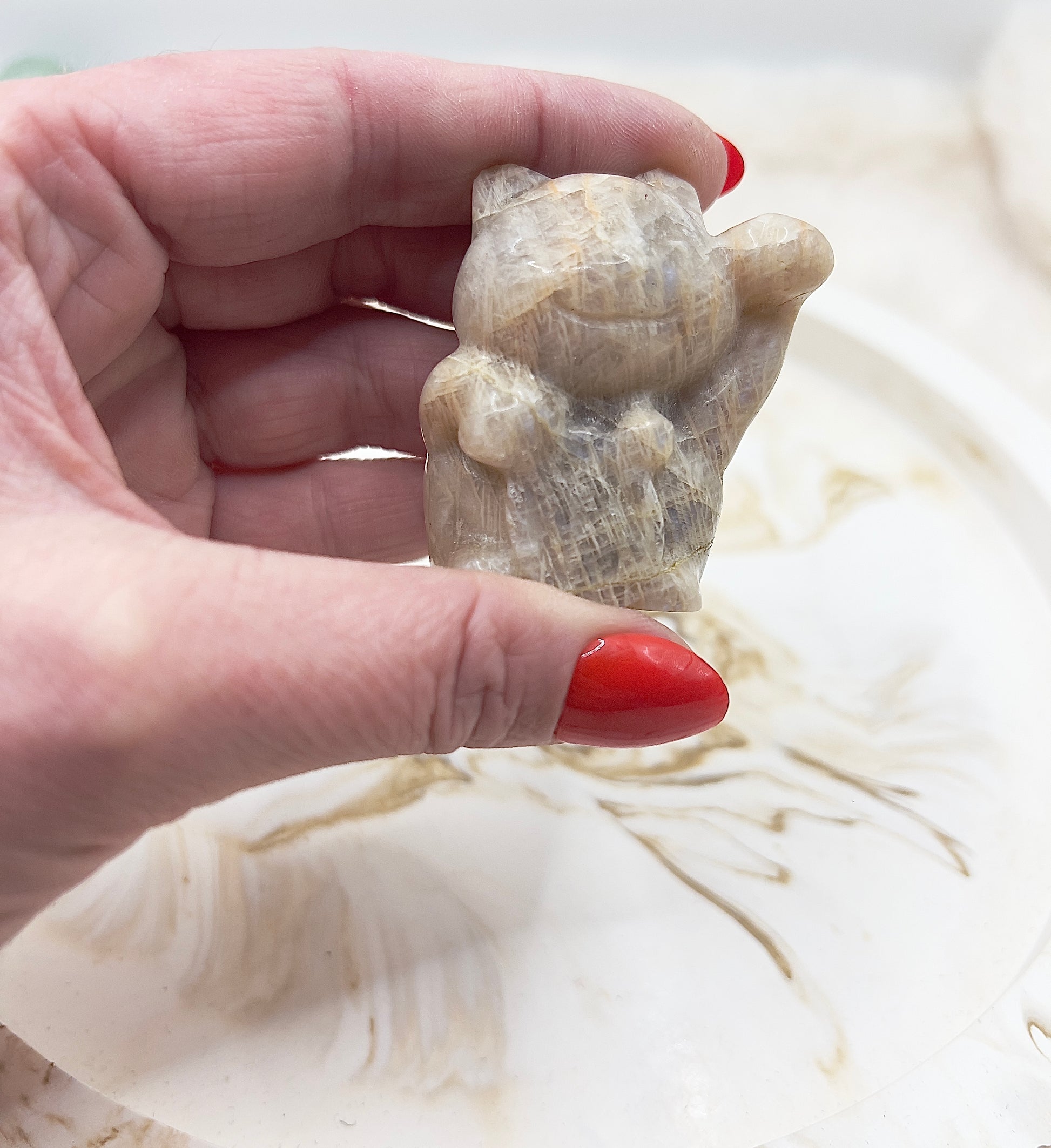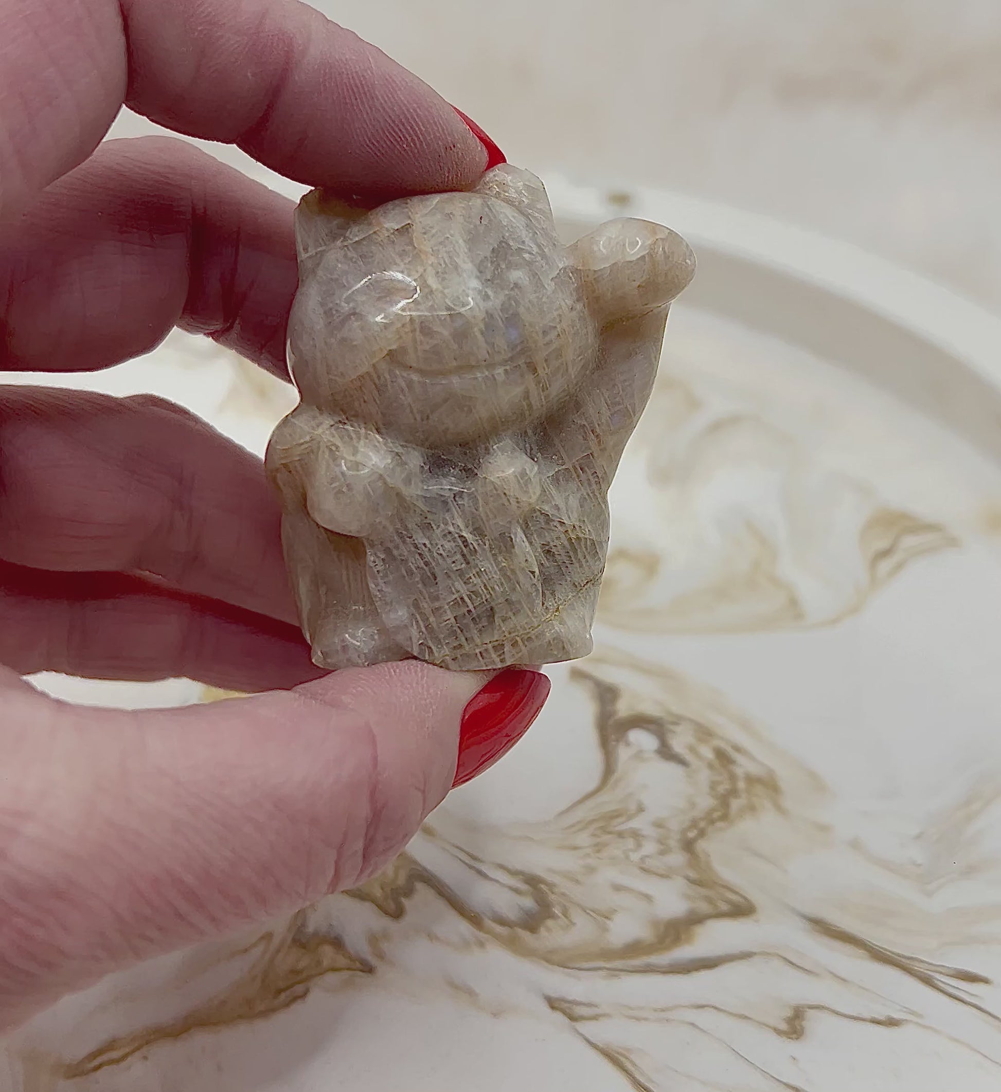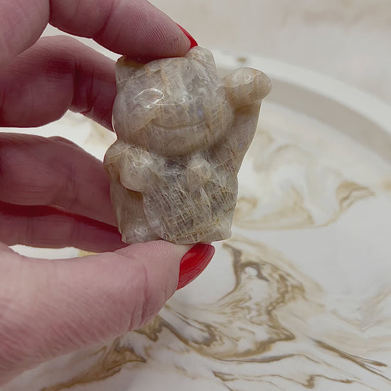 Diese süße Winkekatze aus echtem Sonnen-Mondstein ist ein zauberhafter kleiner Glücksbringer! Ihr warmer, schimmernder Farbton und die feinen, natürlichen Lichtreflexe im Stein verleihen ihr eine magische Ausstrahlung. Jede Bewegung lässt die Oberfläche sanft aufleuchten – ein wunderschönes Detail, das diese Figur so besonders macht.