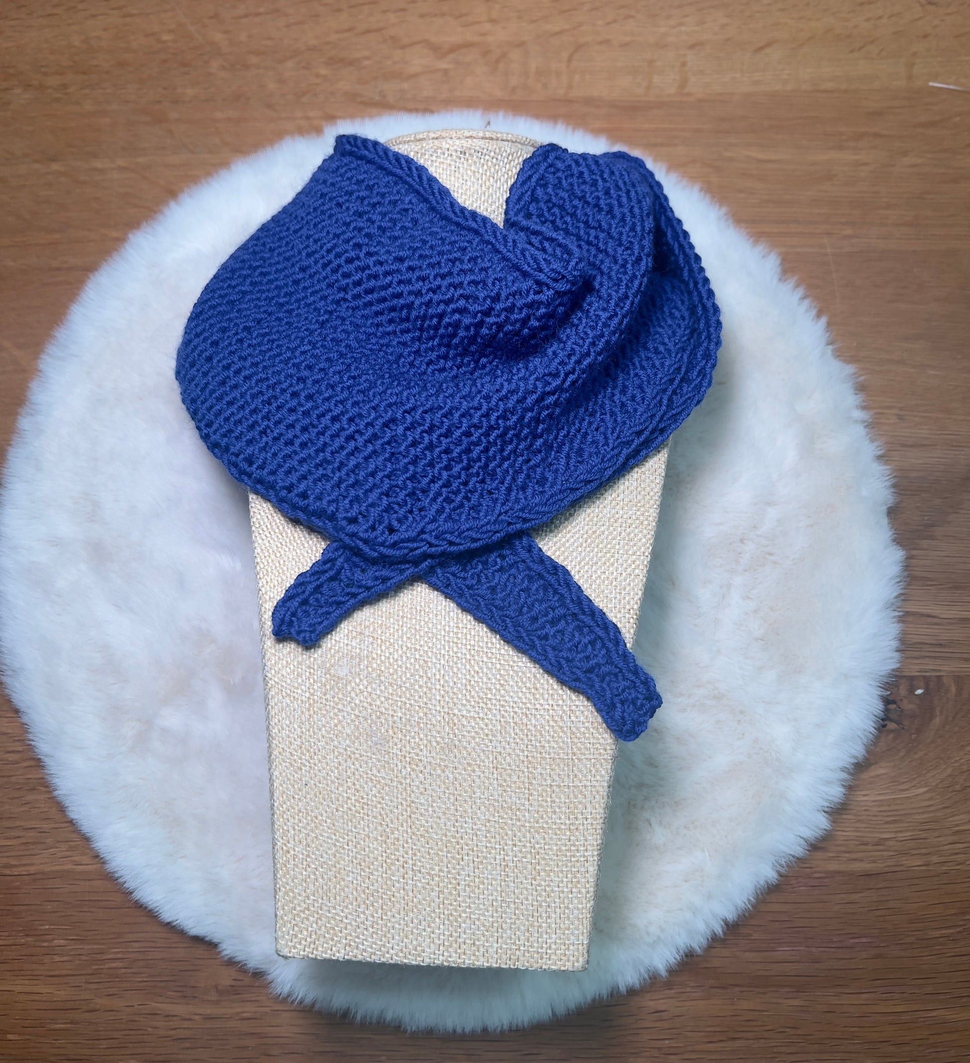 💙 Ozeanzauber – Handgestricktes Dreieckstuch aus Langyarns Merino-Wolle (kräftiges Blau)