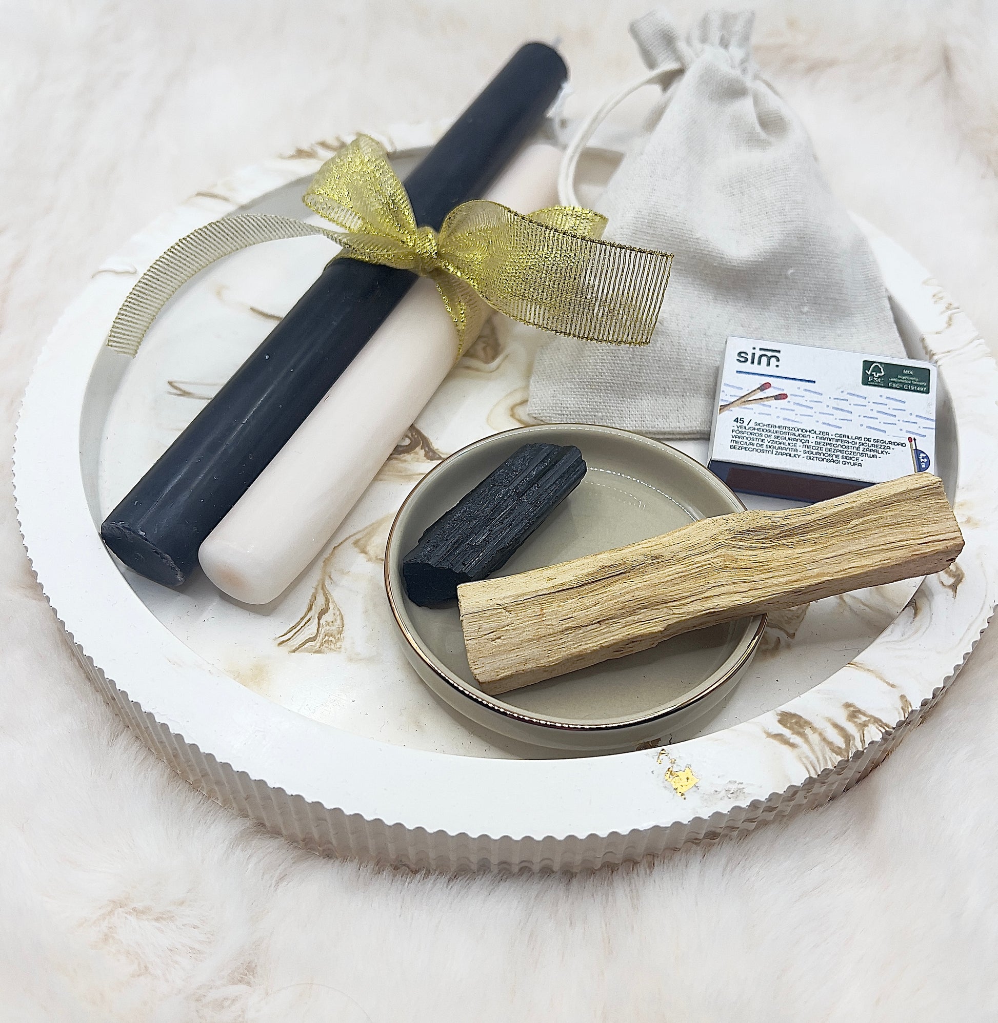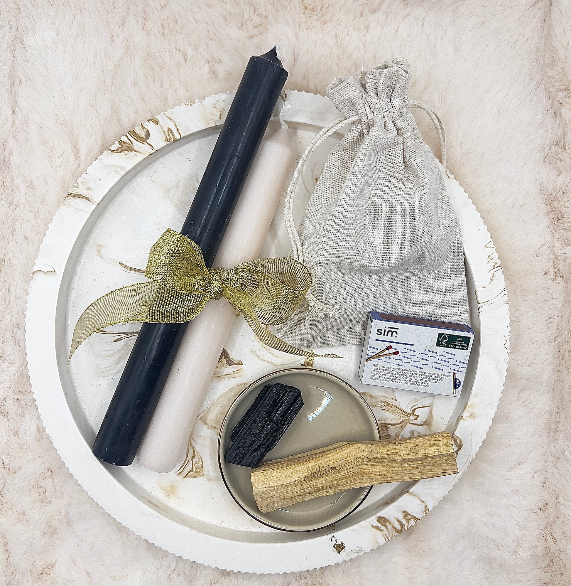 1 kleines Schälchen – zum Ablegen des Palo-Santo-Holzes, des Turmalins oder der Wunschzettel während des Rituals
