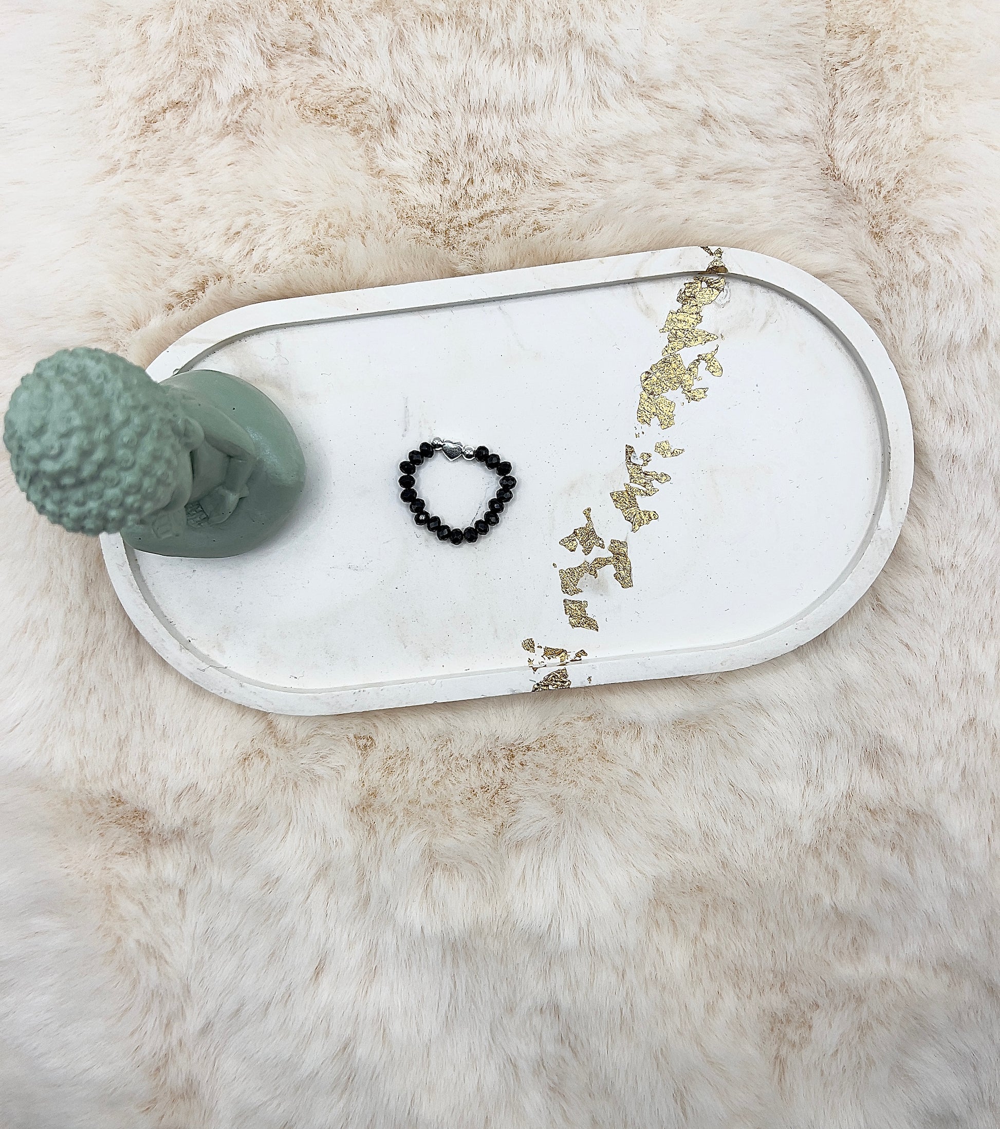 Der Ring ist auf elastischem Gummiband gearbeitet und angenehm zu tragen.