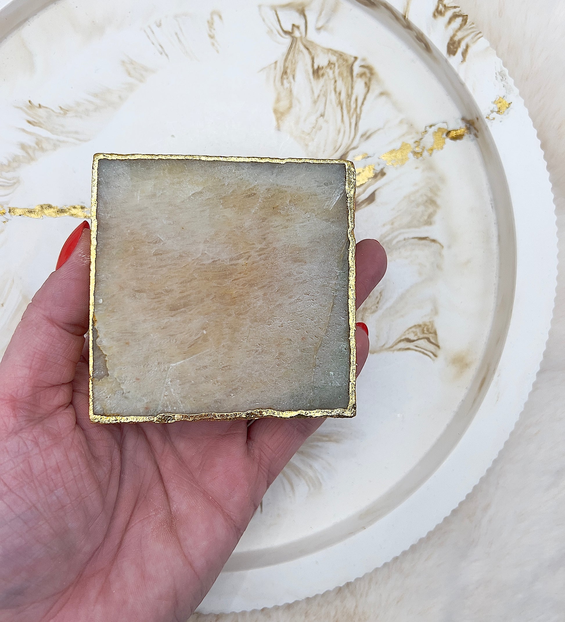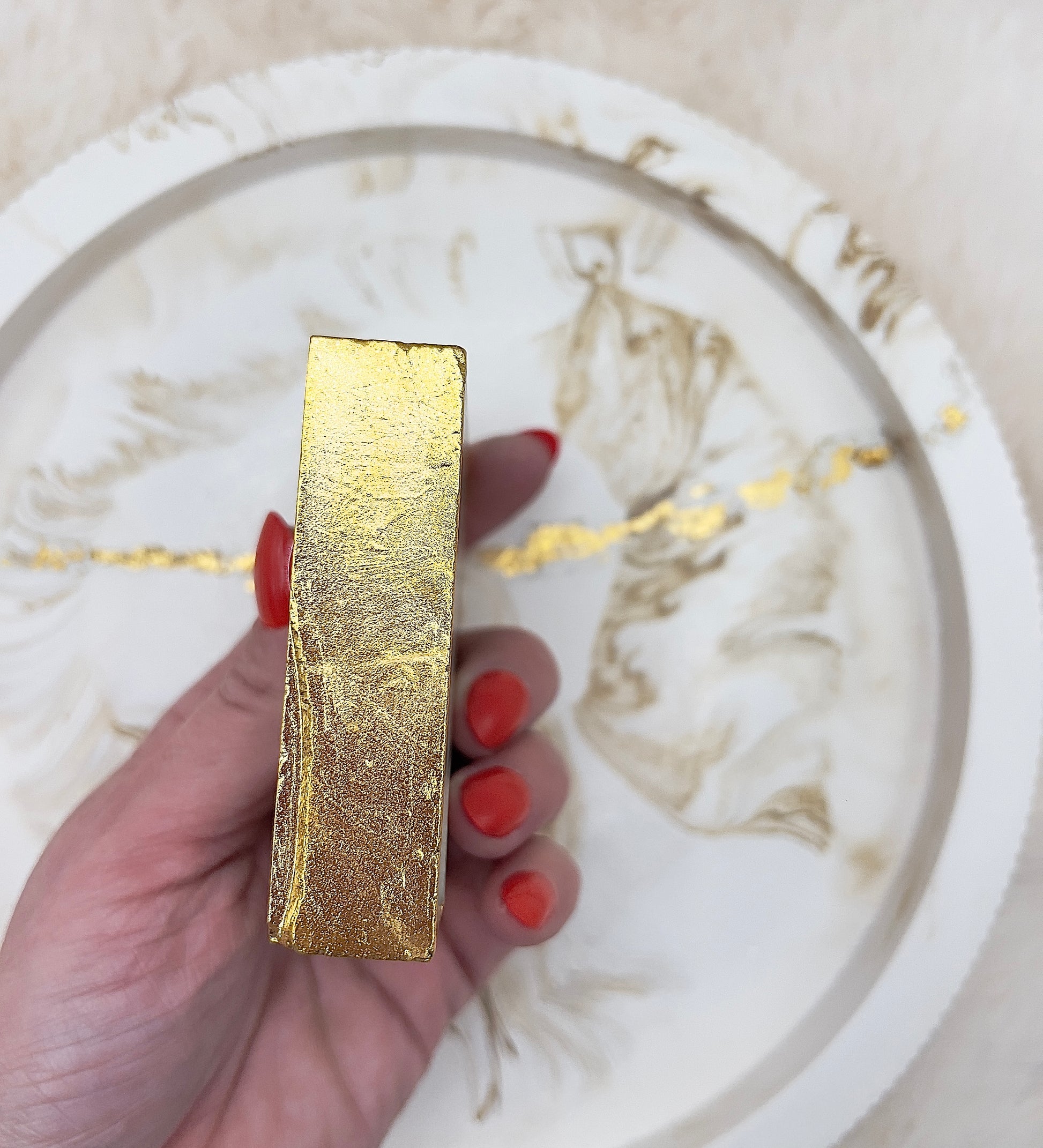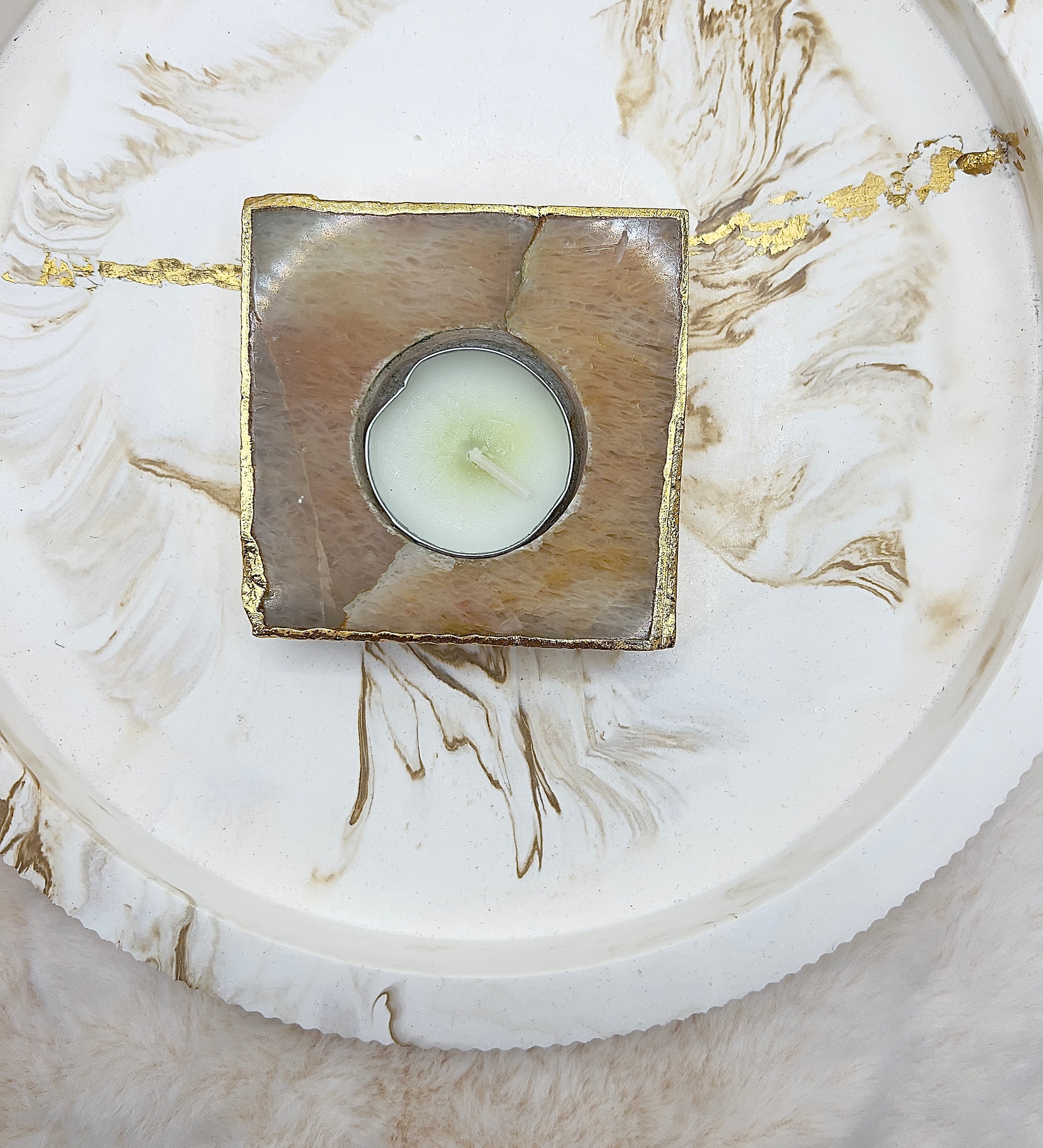 Karneol Teelichthalter – handgeschliffen & an den Rändern 24K vergoldet | 300 g | Warmes Luxus-Unikat