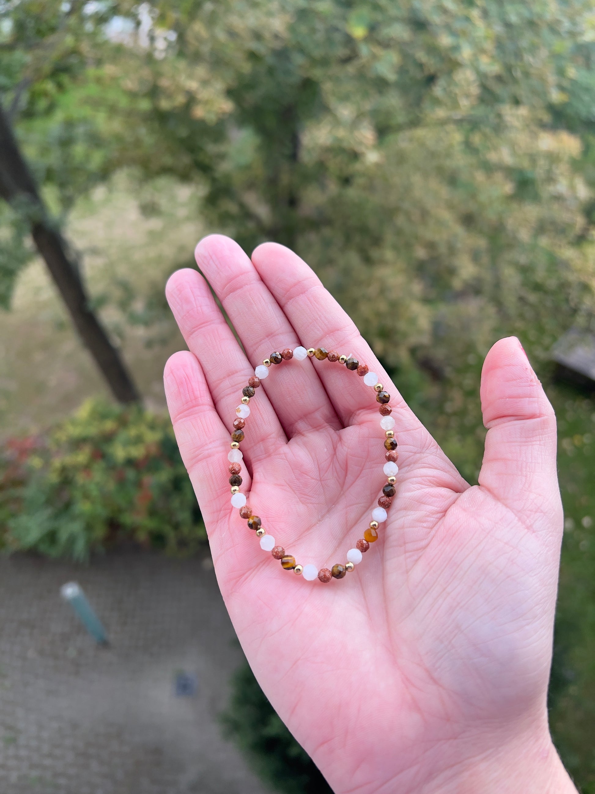 Dieses harmonische Armband vereint drei kraftvolle Heilsteine, die sich gegenseitig in ihrer Wirkung ergänzen: den lichtvollen Golden Healer, das schützende Tigerauge und den intuitiven Mondstein.