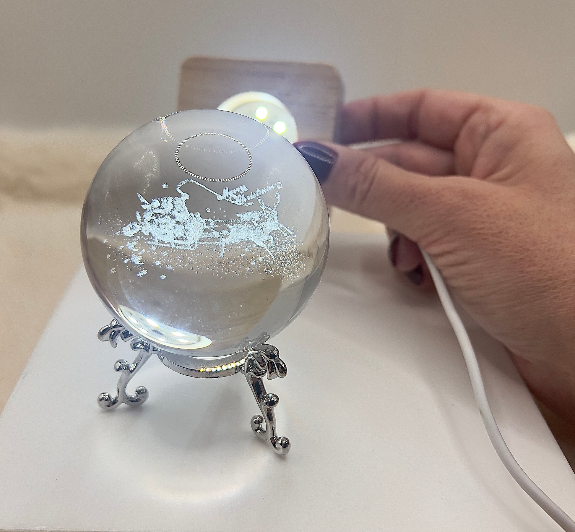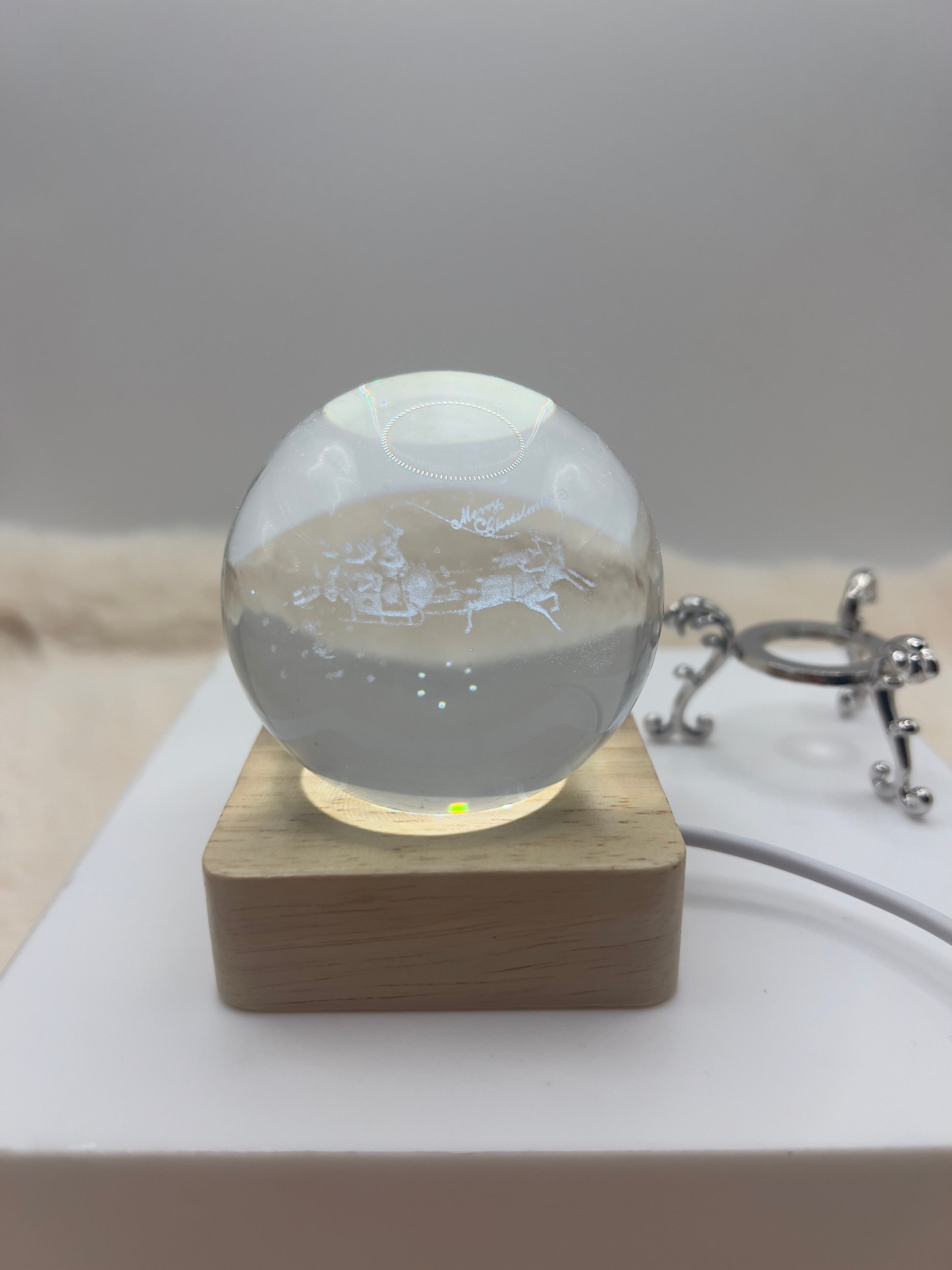 ✨ Kristallkugel „Merry Christmas“ mit Rentier & Schlitten (inkl. Ständer)