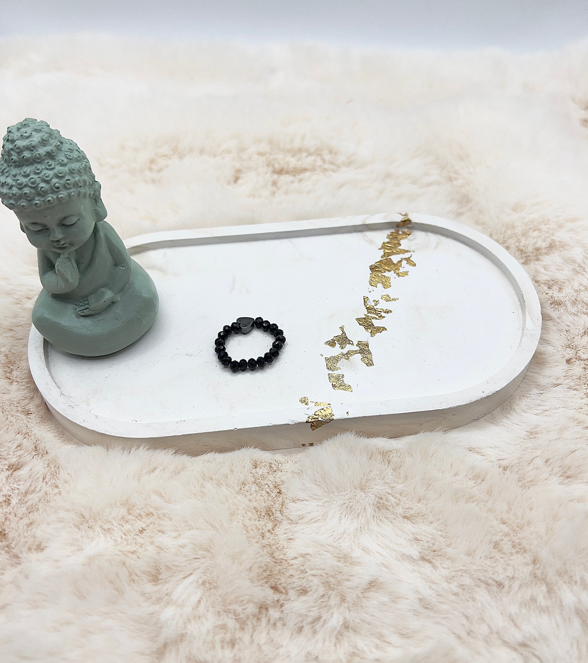Der Ring ist auf elastischem Gummiband gearbeitet und angenehm zu tragen.