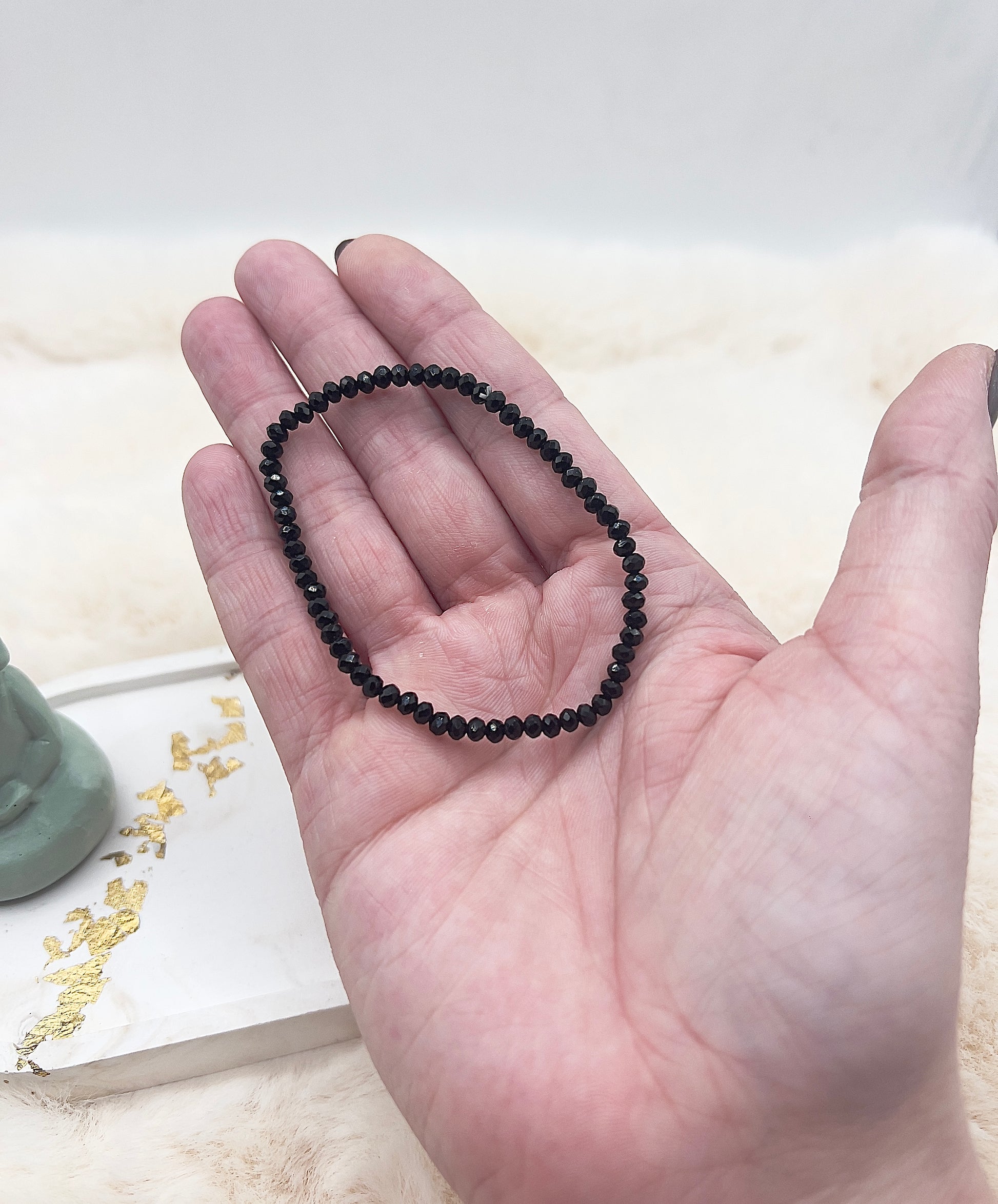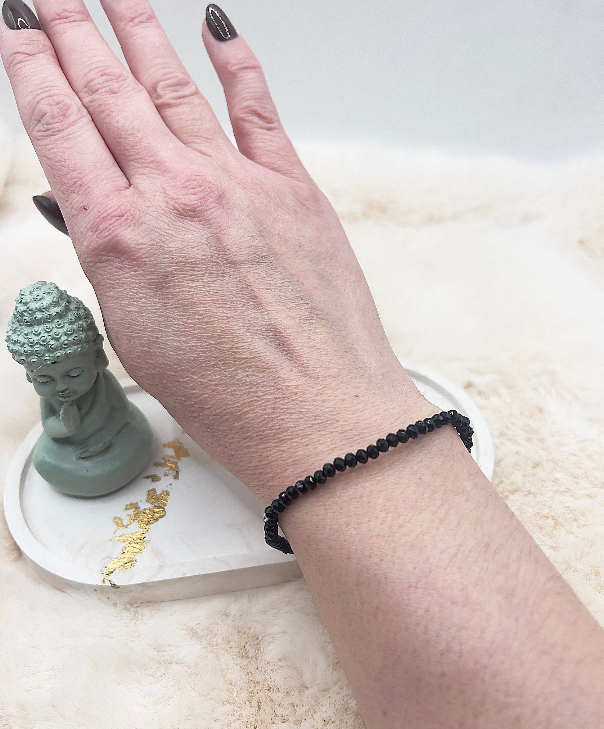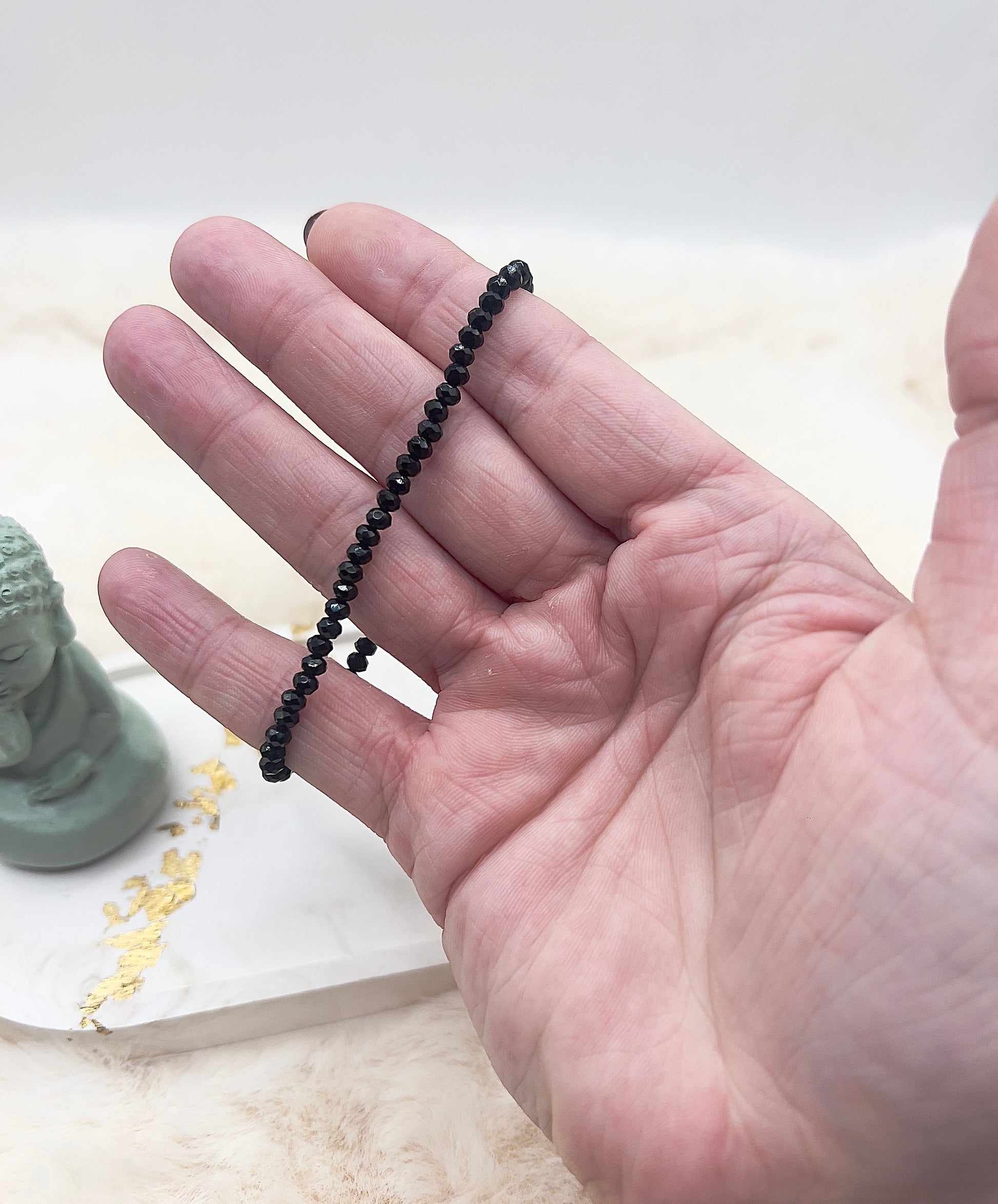 Dieses handgefertigte Edelsteinarmband aus facettiertem schwarzem Turmalin ist ein zeitloser Begleiter für jeden Tag. Die feinen, ca. 3,5 mm großen facettierten Perlen verleihen dem Armband eine dezente, elegante Optik und machen es vielseitig kombinierbar.