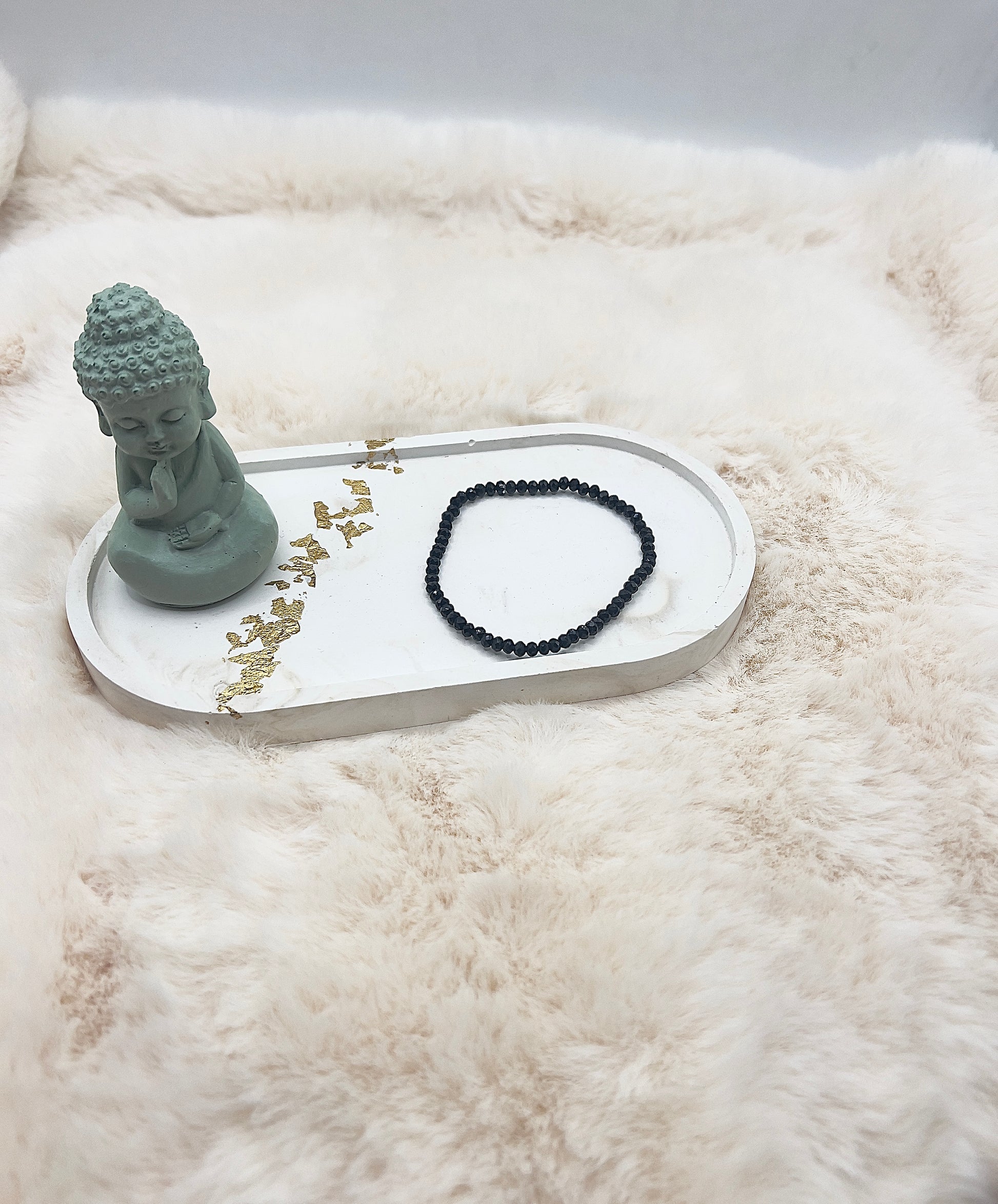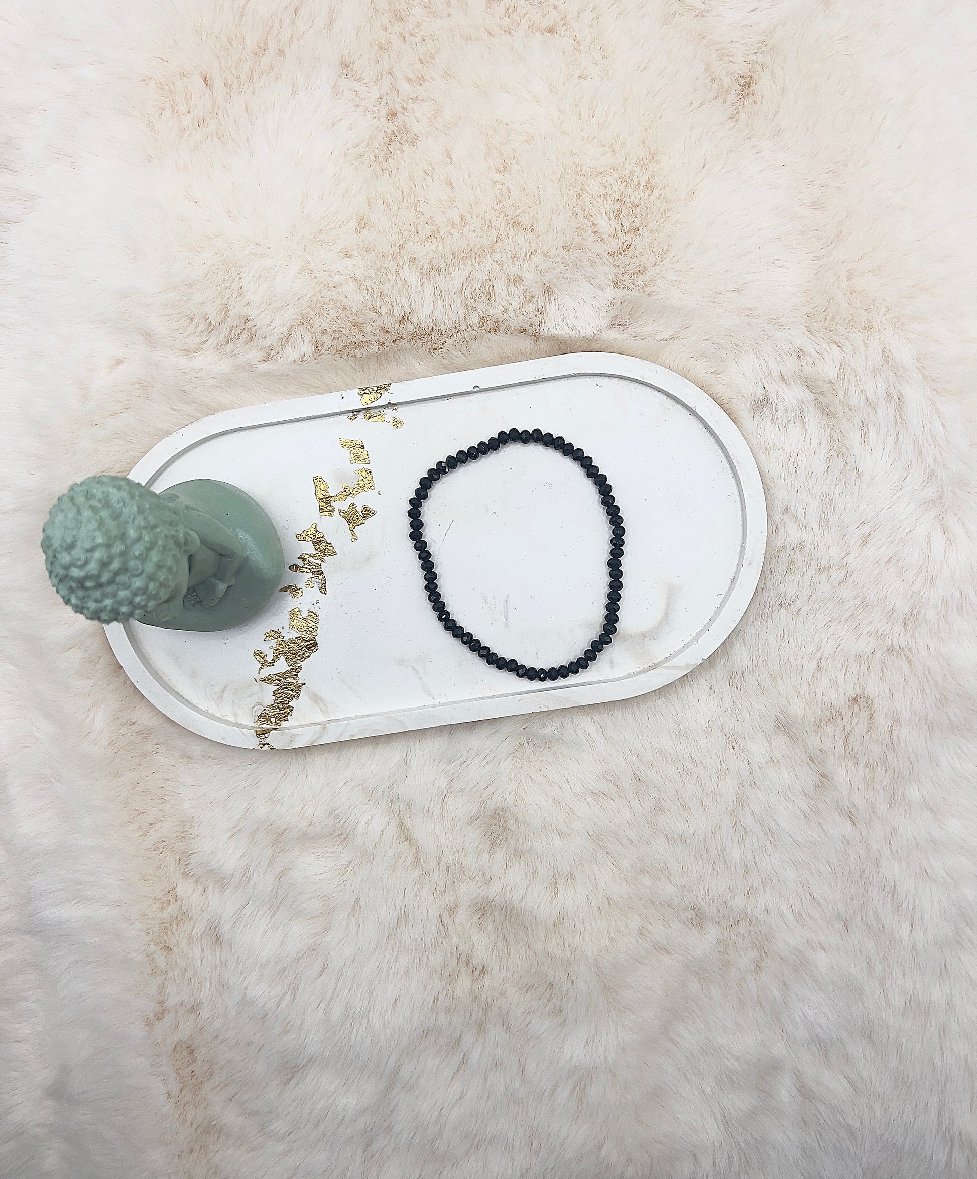 Das Armband ist auf elastischem Gummiband gearbeitet und angenehm zu tragen.
