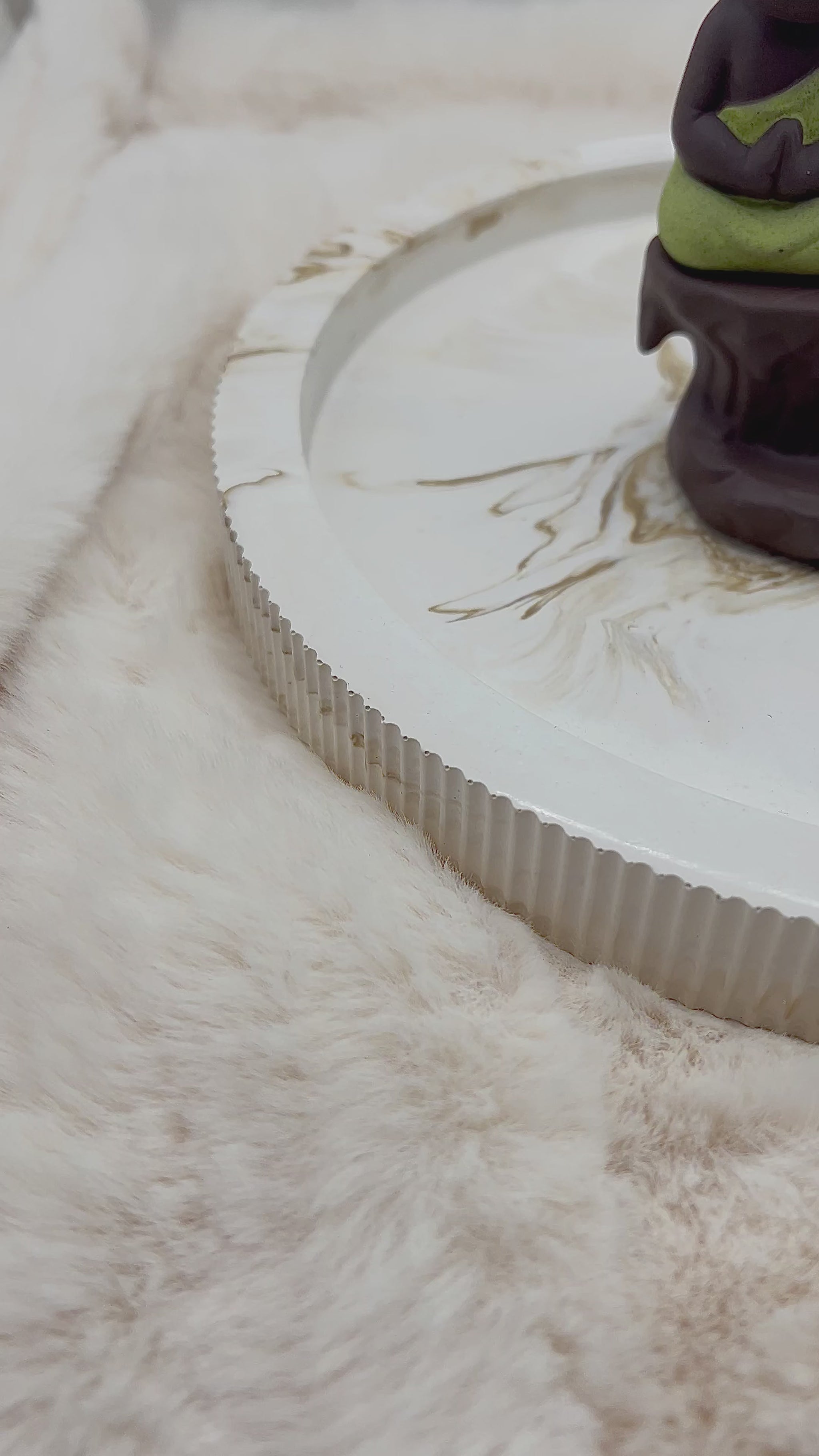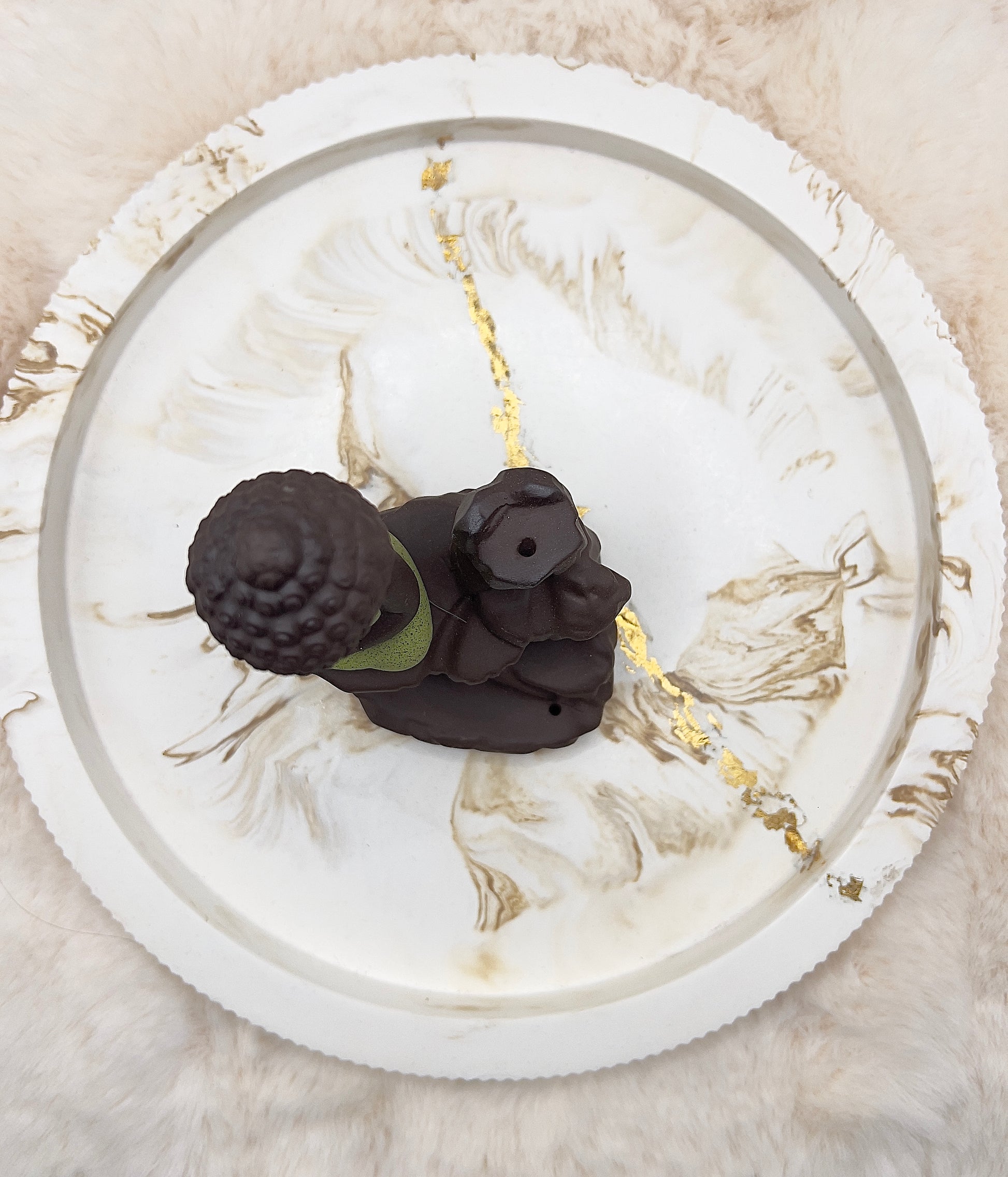 Wird ein Rückfluss-Räucherkegel oben platziert, fließt der Rauch sanft nach unten und sammelt sich ruhig im Sockel – ein besonderer visueller Effekt, der eine entspannte Atmosphäre schafft. Zusätzlich befindet sich an der Seite eine kleine Öffnung, in der auch ein Räucherstäbchen verwendet werden kann.