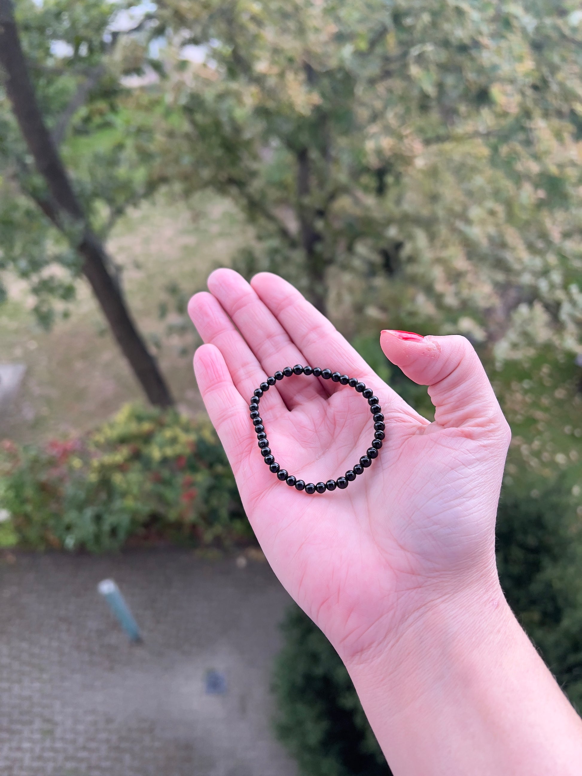 Dieses elegante Armband aus echten schwarzen Achat-Perlen (4 mm) ist ein kraftvoller Begleiter für Ruhe, Erdung und innere Stärke.