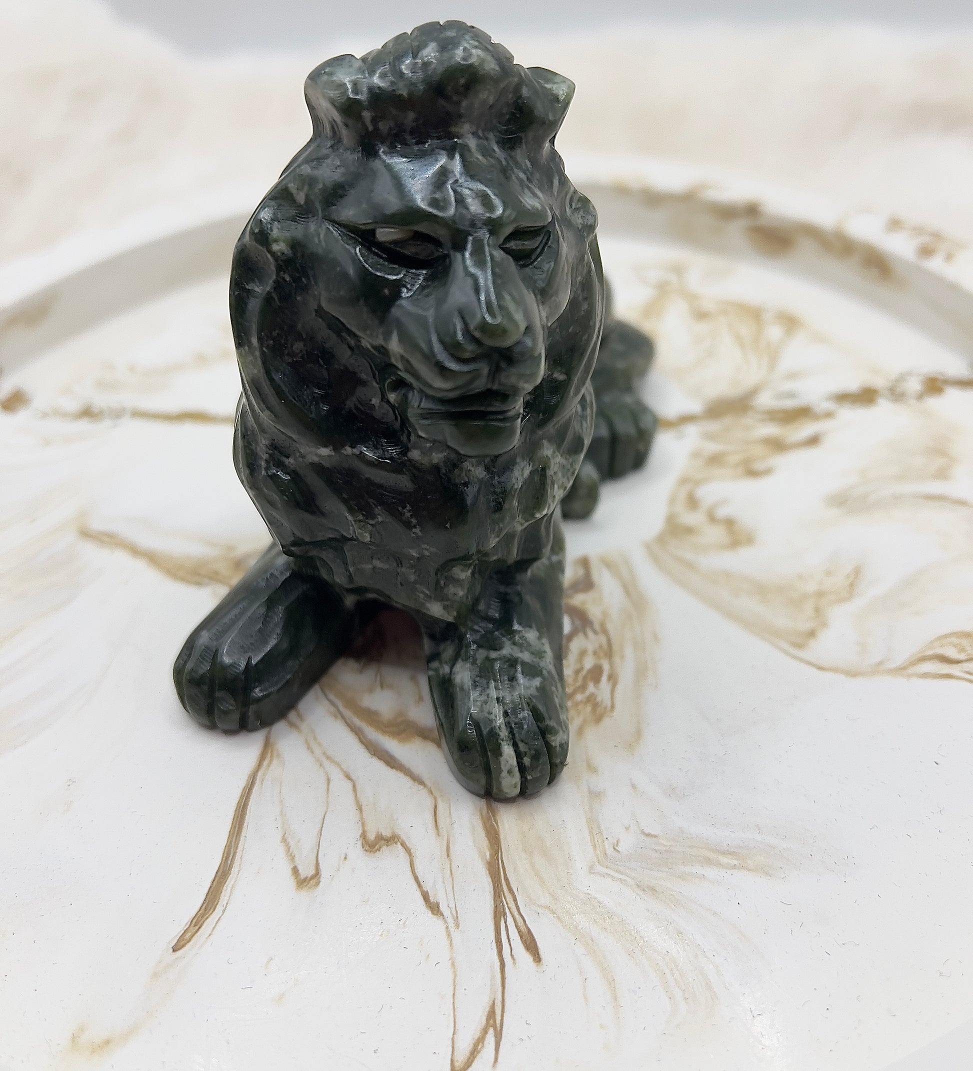 Schutzlöwe aus Grüner Jade – handgearbeitetes Unikat für Stärke & Harmonie