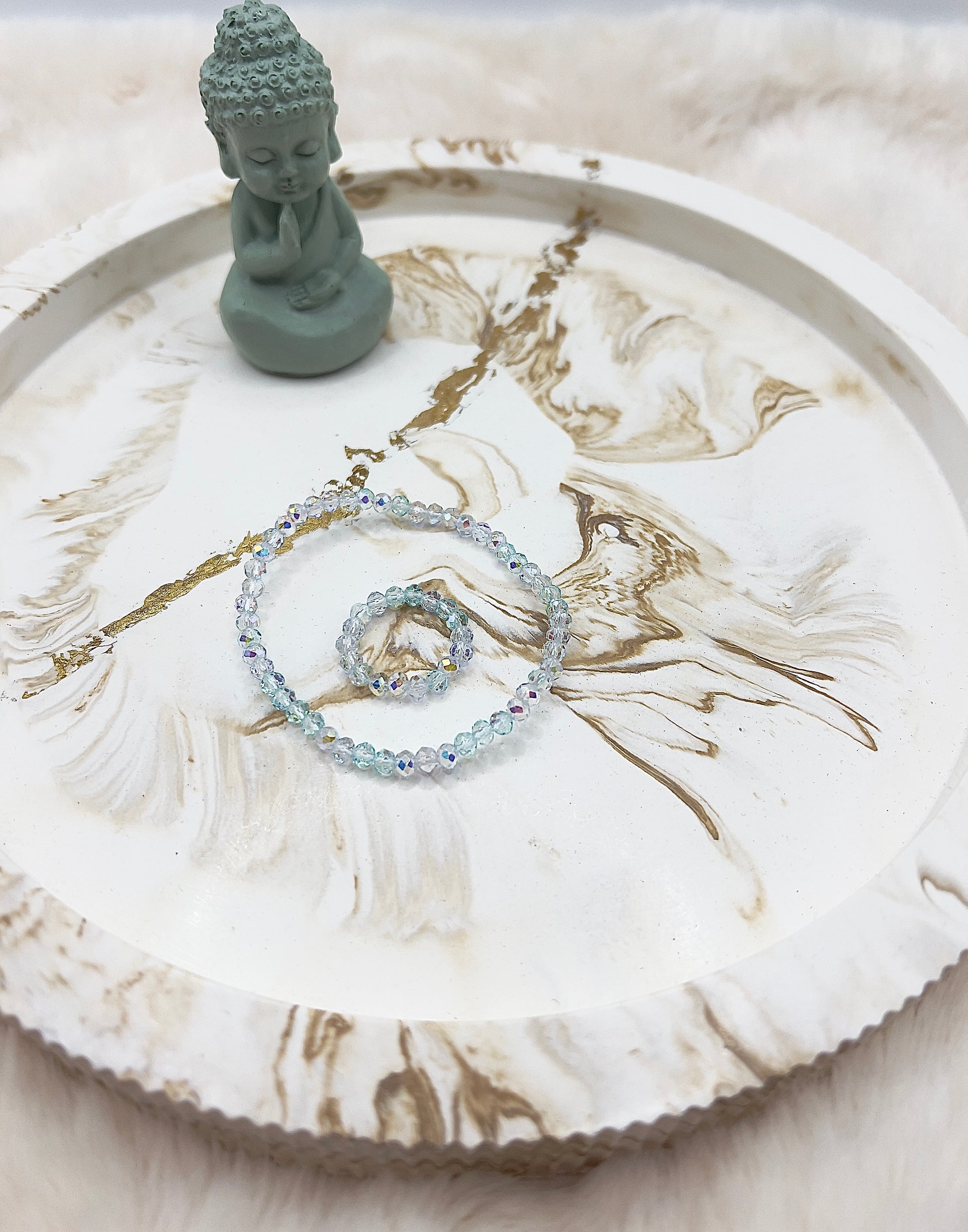 Tauche ein in den funkelnden Zauber der Adventszeit: Das exklusive Adventstürchen 3 bringt dir ein zartes, edles Kristall-Set aus österreichischen Premium-Kristallen in einem sanften Mintschimmer. Dieses Set besteht aus einem eleganten Armband und einem passenden Ring – beide gefertigt aus 4 mm facettierten Kristallperlen, die das Licht traumhaft einfangen und für einen winterlichen Glow sorgen.